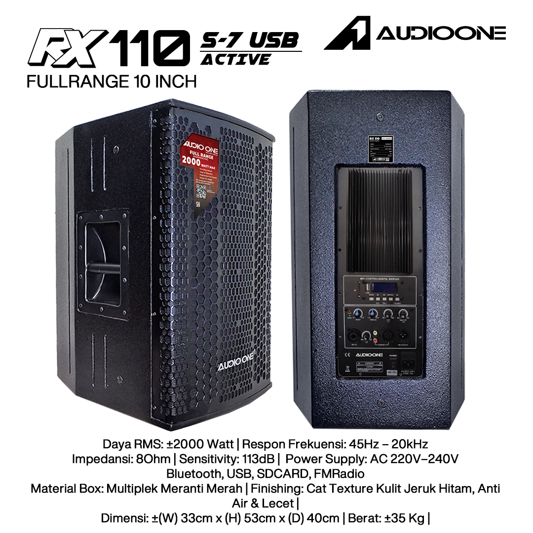 Ini adalah sistem suara yang dirancang untuk memberikan kualitas suara yang luar biasa dengan daya 2000W. Dengan sistem 2Way Single 10" Active, driver 1.75", dan woofer 1X10" dengan magnet Ferrite, ini menawarkan frekuensi respon yang luas dari 45Hz hingga 20kHz. Sensitivity 113dB dan impedance 8Ohm memastikan bahwa suara yang dihasilkan tidak hanya kuat tetapi juga jernih dan detail.